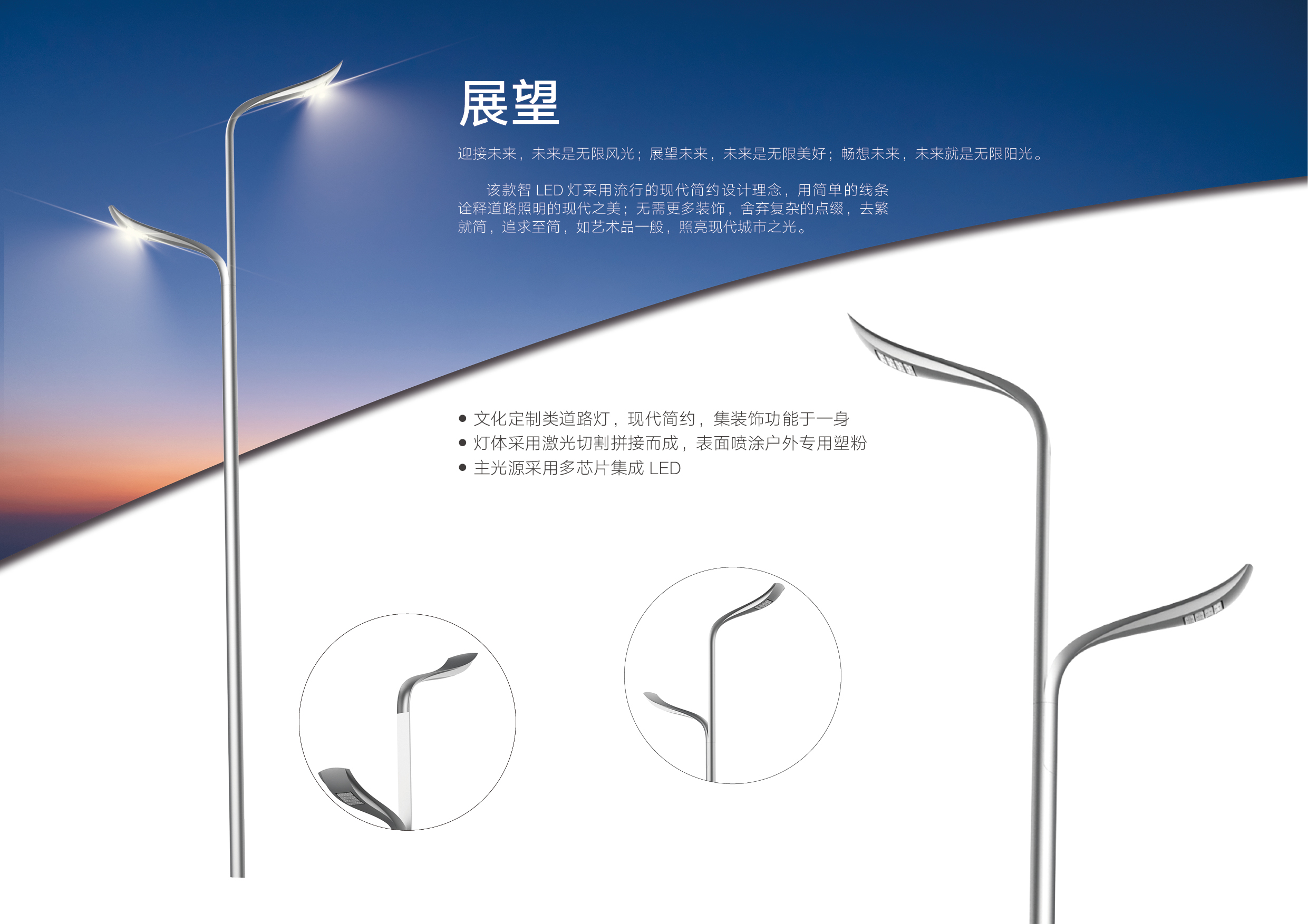 • 主營產品:交通桿件、多功能綜合桿、太陽能路燈、LED智慧路路燈、戶外亮化燈具、樓體亮化。
