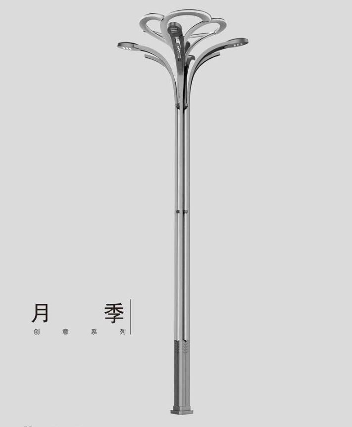 1、高度為6-16米; 2、光源為4組LED光源,色溫2500-6500K,每個光源功率為60-300W,頂部為四處七彩光環構成; 3、LED驅動電源壽命可達五年; 4、整體熱鍍鋅噴塑,保證燈桿15年不生銹; 5、可以根據使用地區的地域文化、產業特點等進行文化定制;